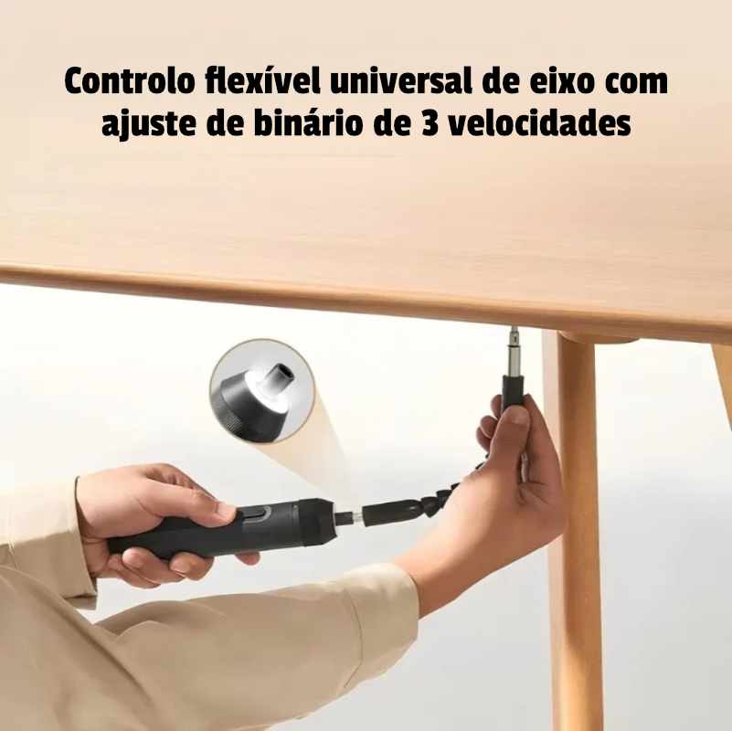 Inclui uma chave de fendas elétrica com carregamento USB-C e uma mala de transporte prática, juntamente com ferramentas manuais essenciais.