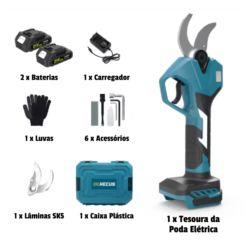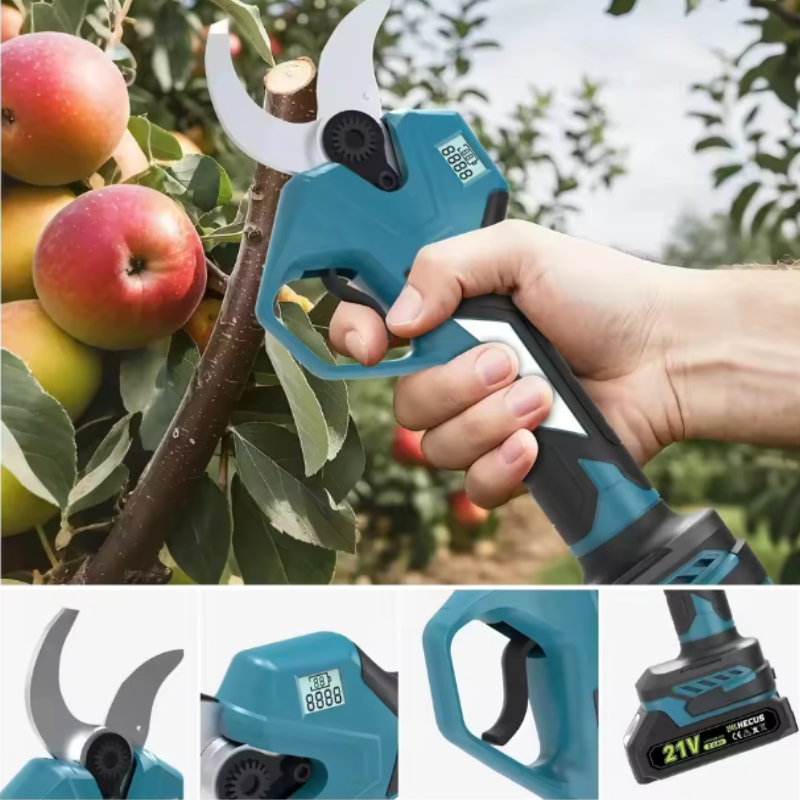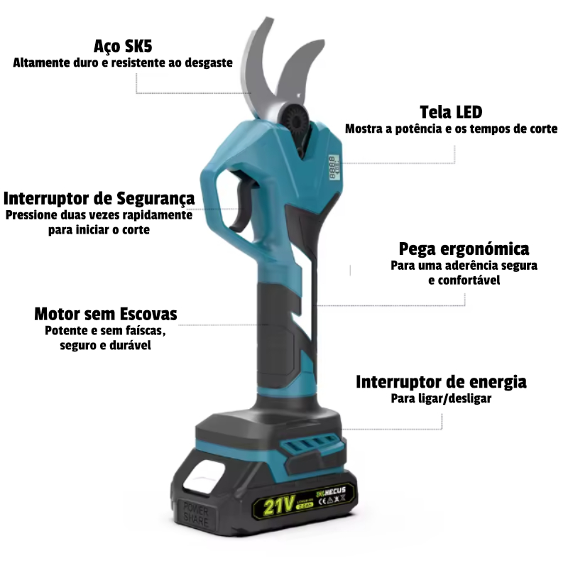 A Tesoura Elétrica Gisam 40mm foi desenvolvida para cortes potentes, rápidos e precisos em árvores, arbustos, bonsais e pomares.