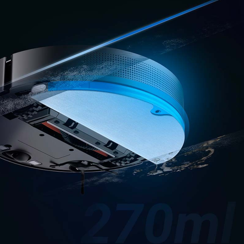 A bateria de 5200 mAh oferece até 2,5 horas de autonomia, e o robô regressa automaticamente à base quando precisa de carregar.