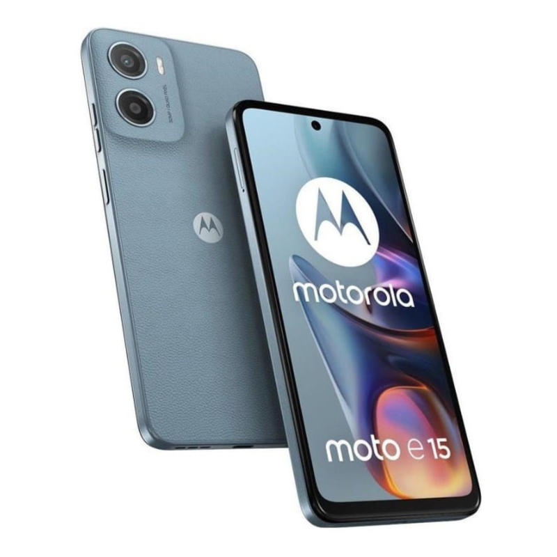 O Motorola Moto E15 oferece uma combinação perfeita de ecrã grande, câmara de alta resolução e bateria duradoura, mantendo um design fino, moderno e resistente a salpicos.