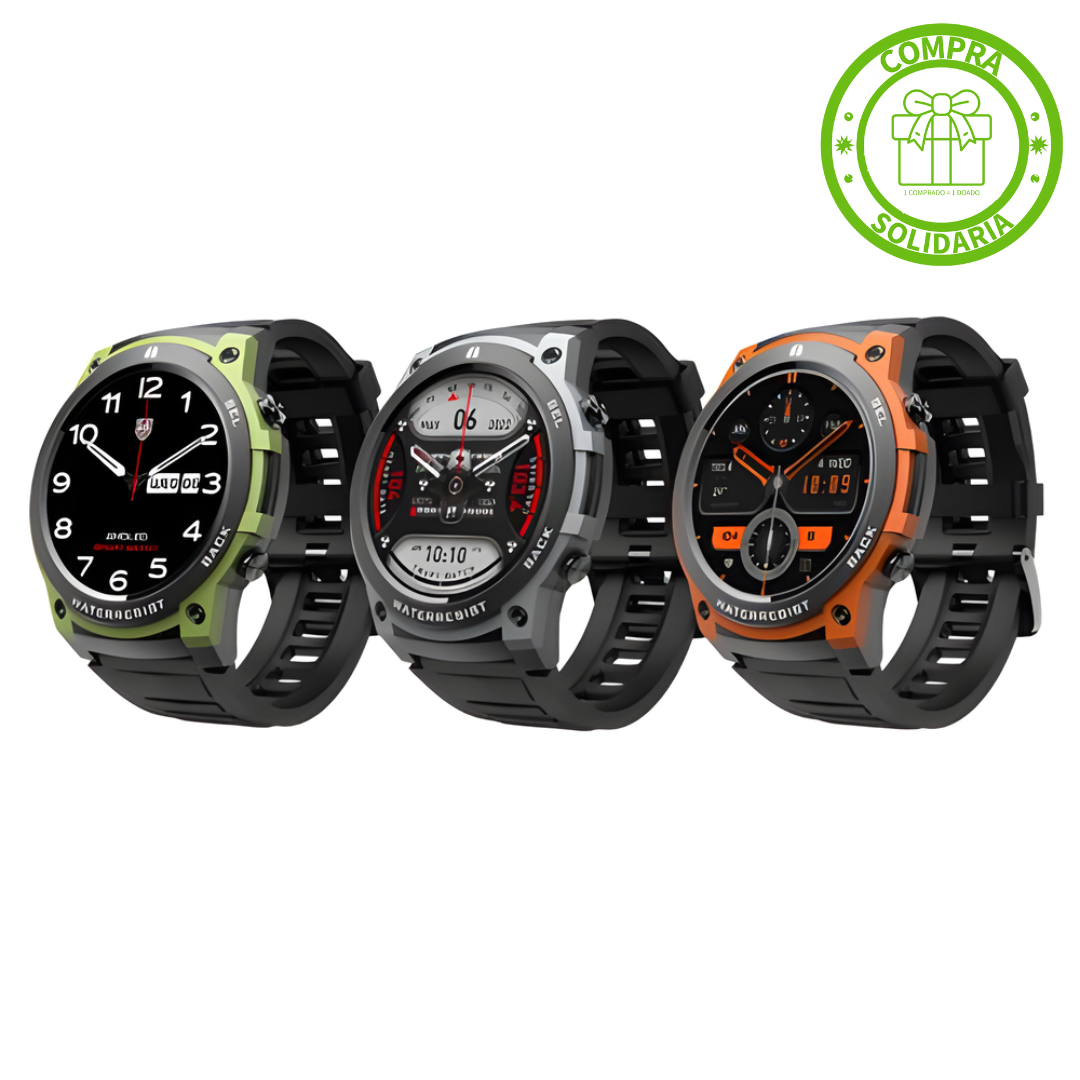 Inclui ainda 150+ modos desportivos e monitorização completa de saúde: frequência cardíaca, SpO₂, sono e stress.