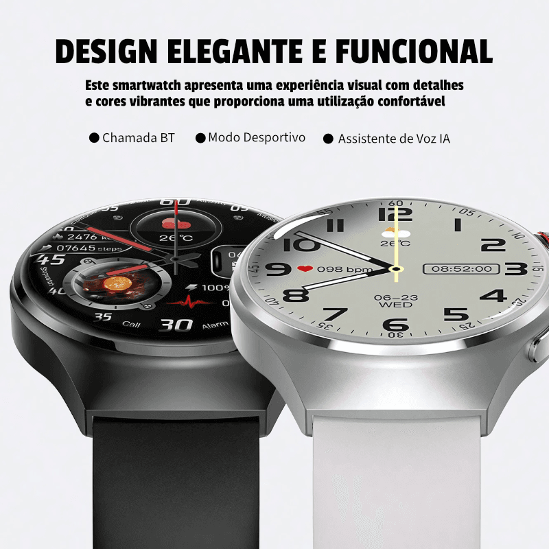Monitorize a sua saúde, receba notificações em tempo real e mantenha-se sempre conectado com estilo.