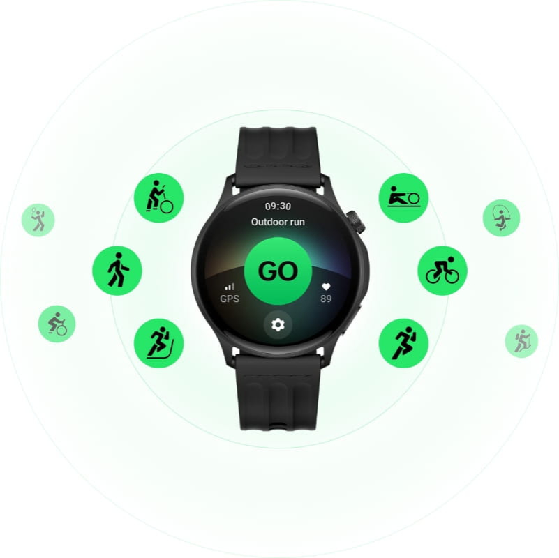 Com ecrã AMOLED de 1,46”, conectividade Bluetooth 5.3, GPS de dupla frequência e resistência à água e poeira, é ideal para o dia a dia, desporto e atividades ao ar livre.