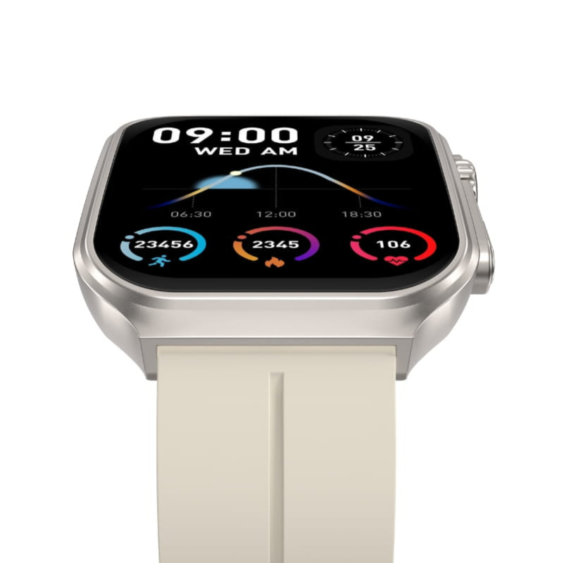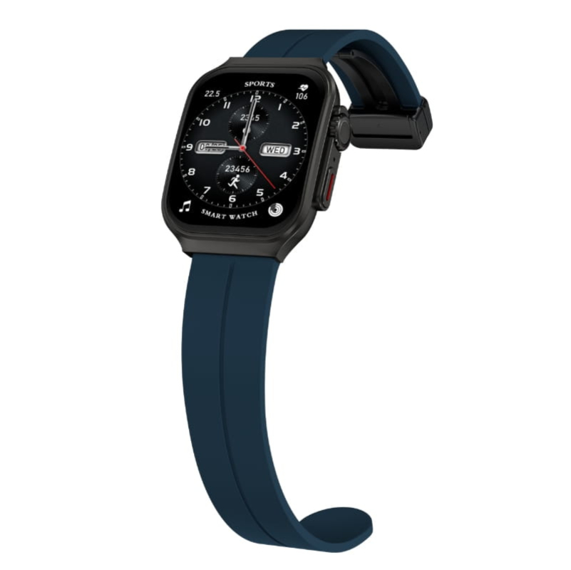 om ecrã curvo 3D de 2,01”, correia de silicone intercambiável e sensores de frequência cardíaca e SPO2, oferece monitorização contínua num design elegante e confortável.